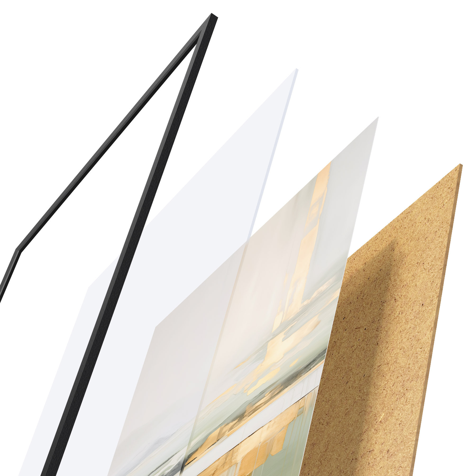 Plakatą sudaro rėmas, pleksiklas, atspausdintas vaizdas ir medžio drožlių plokštės pagrindas. Plakatą galima iš karto pakabinti ant sienos dėl kitoje pusėje esančių laikiklių.