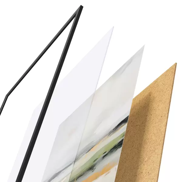 Plakatą sudaro rėmas, pleksiklas, atspausdintas vaizdas ir medžio drožlių plokštės pagrindas. Plakatą galima iš karto pakabinti ant sienos dėl kitoje pusėje esančių laikiklių.