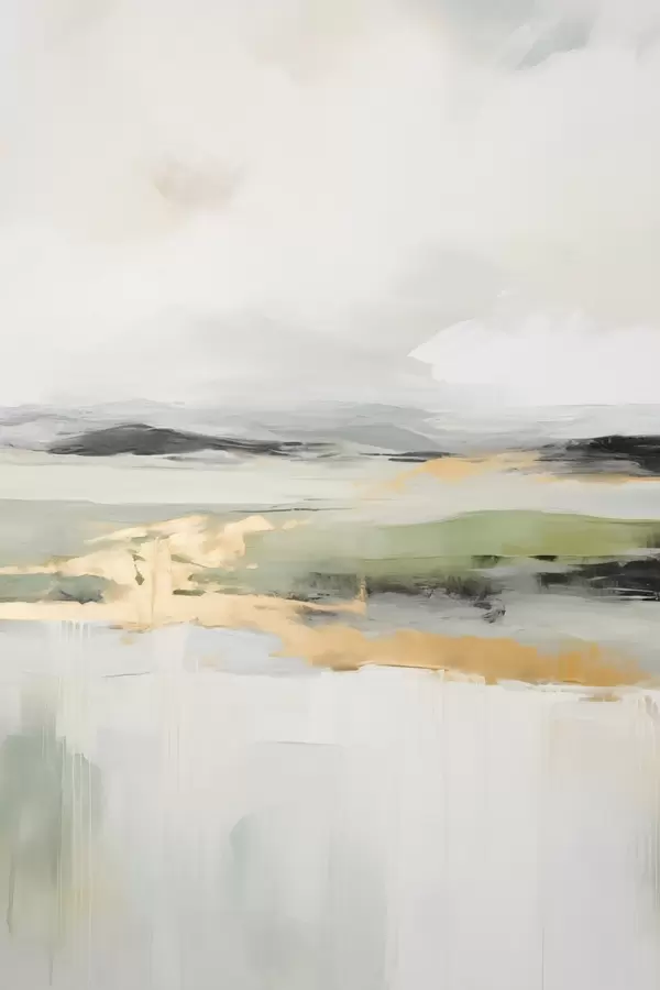 Plakatas Abstraktus peizažas su geltonais akcentais, minimalistinė žemės, vandens ir dangaus kompozicija, su prislopintomis spalvomis. f46269