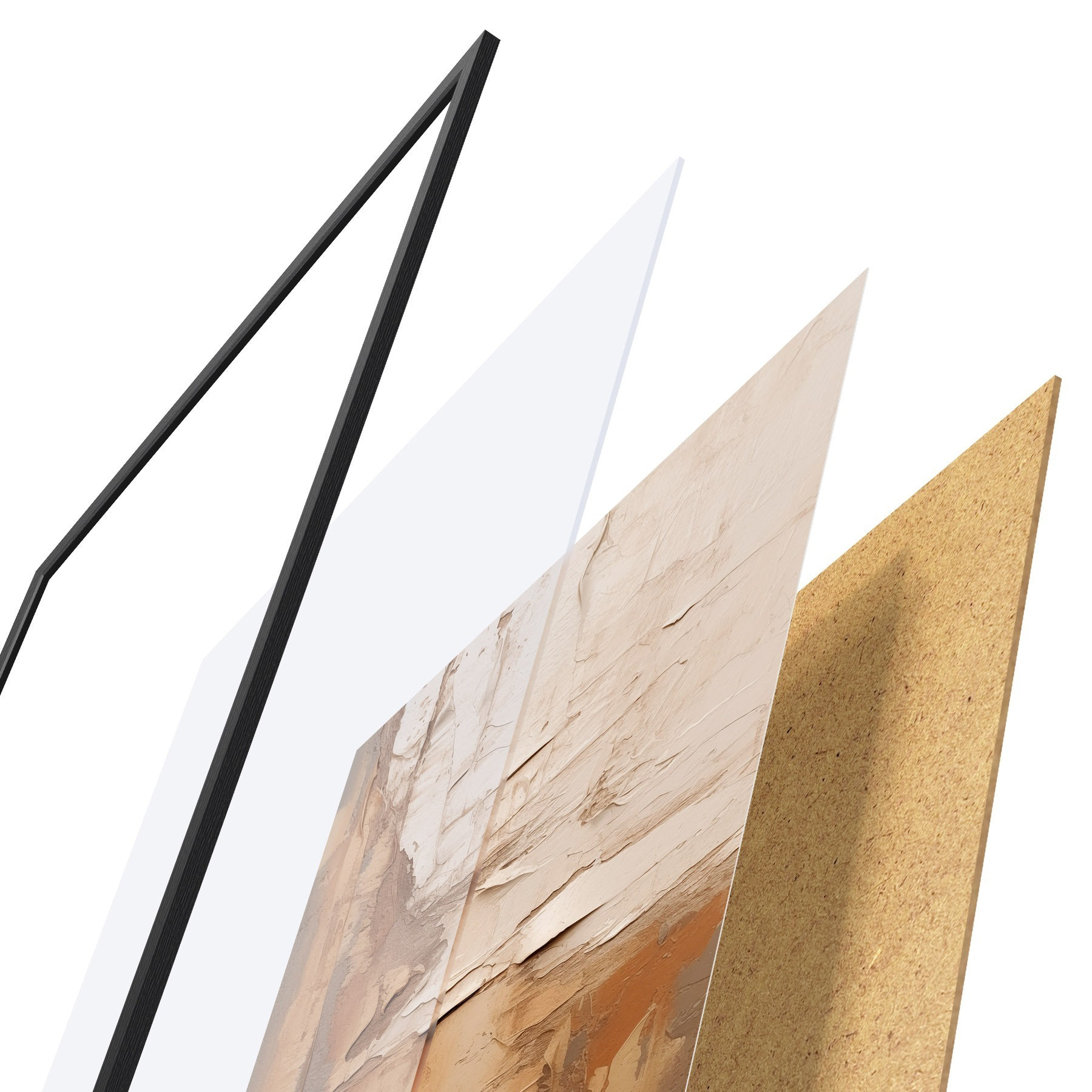 Plakatą sudaro rėmas, pleksiklas, atspausdintas vaizdas ir medžio drožlių plokštės pagrindas. Plakatą galima iš karto pakabinti ant sienos dėl kitoje pusėje esančių laikiklių.