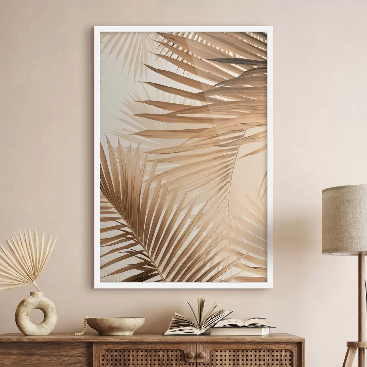 Plakatas Abstrakčios palmių lapai rudos spalvos tonais, tropiniai, botaniniai, gamtos, minimalistiniai, elegantiški, modernus dizainas Ne f46275