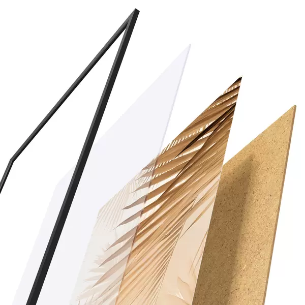 Plakatą sudaro rėmas, pleksiklas, atspausdintas vaizdas ir medžio drožlių plokštės pagrindas. Plakatą galima iš karto pakabinti ant sienos dėl kitoje pusėje esančių laikiklių.