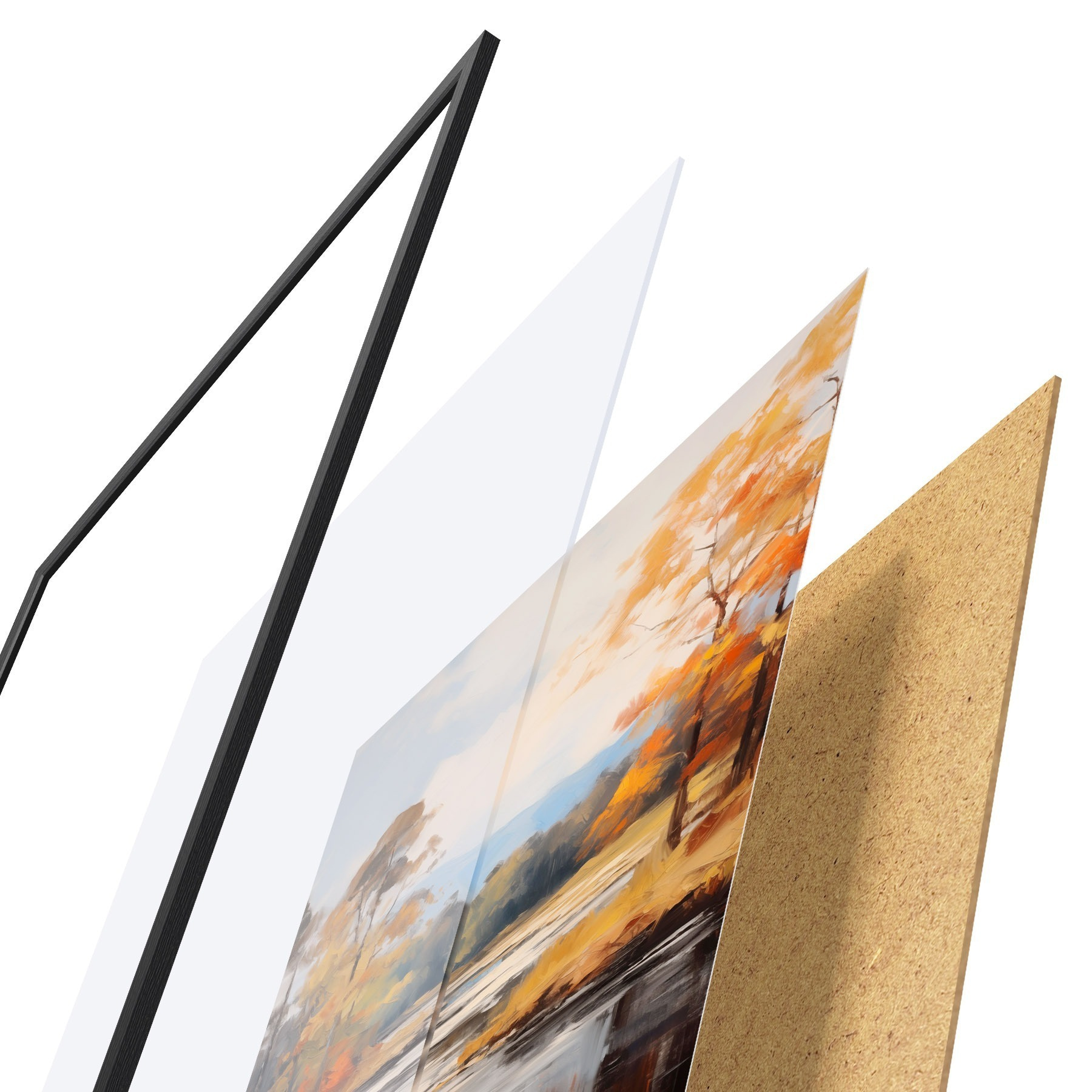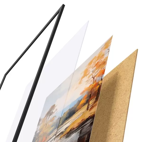 Plakatą sudaro rėmas, pleksiklas, atspausdintas vaizdas ir medžio drožlių plokštės pagrindas. Plakatą galima iš karto pakabinti ant sienos dėl kitoje pusėje esančių laikiklių.
