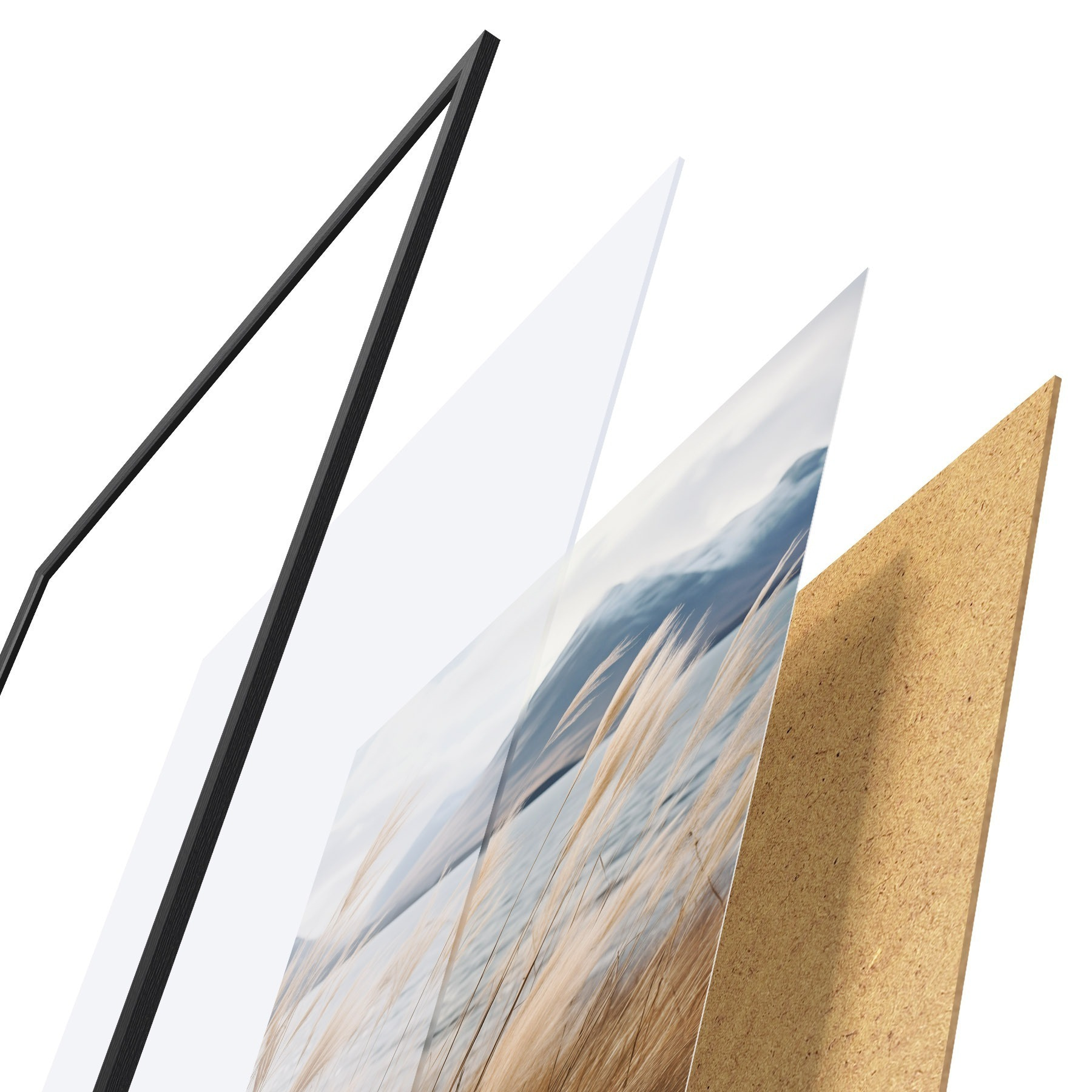 Plakatą sudaro rėmas, pleksiklas, atspausdintas vaizdas ir medžio drožlių plokštės pagrindas. Plakatą galima iš karto pakabinti ant sienos dėl kitoje pusėje esančių laikiklių.