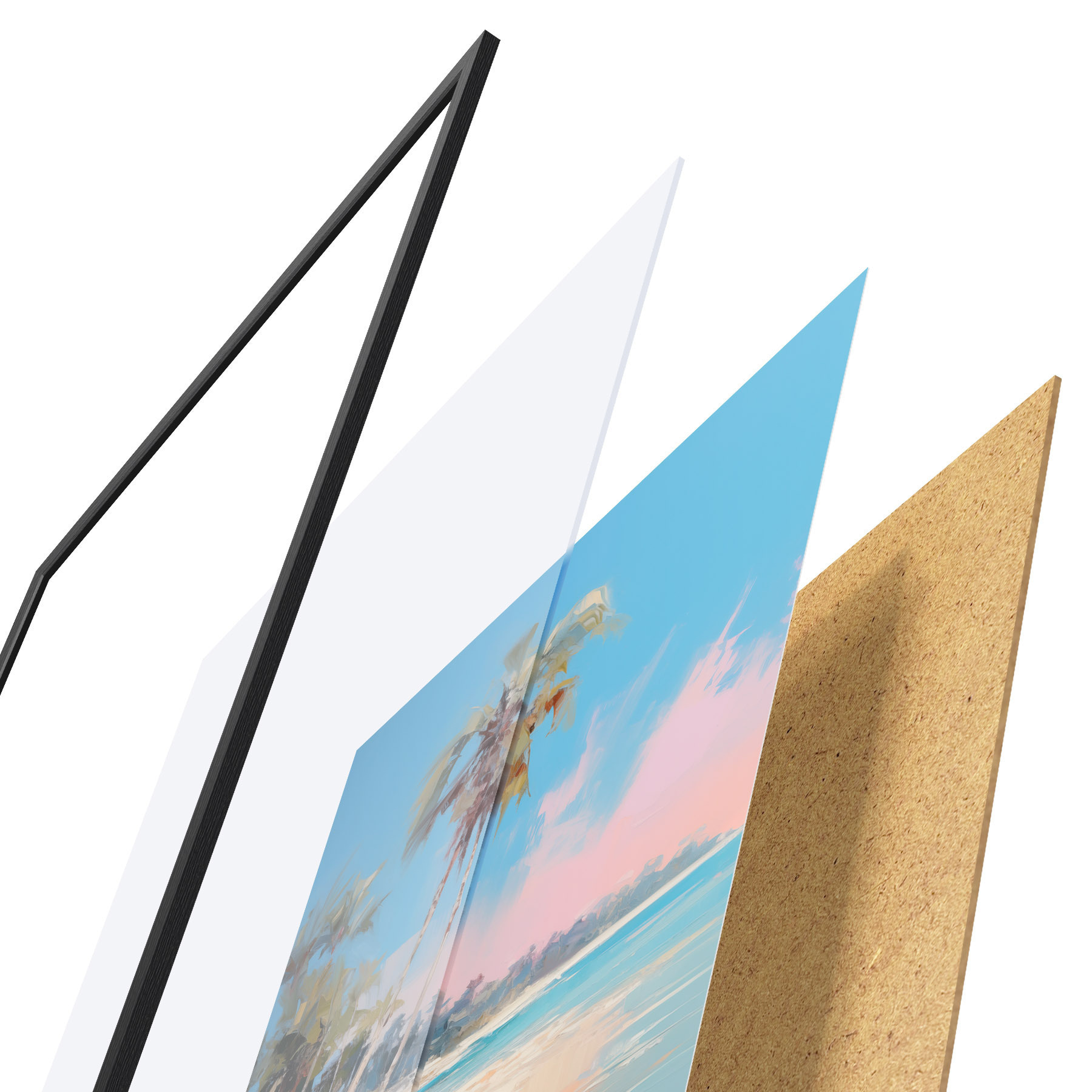 Plakatą sudaro rėmas, pleksiklas, atspausdintas vaizdas ir medžio drožlių plokštės pagrindas. Plakatą galima iš karto pakabinti ant sienos dėl kitoje pusėje esančių laikiklių.