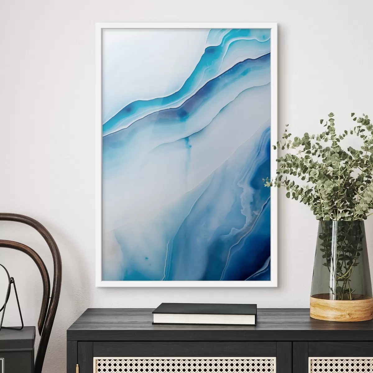 Plakatas Abstraktus mėlynas ir baltas agato raštas, sūkurinės linijos ir gradientai, lygi tekstūra, modernus menas, minimalistinis f46291