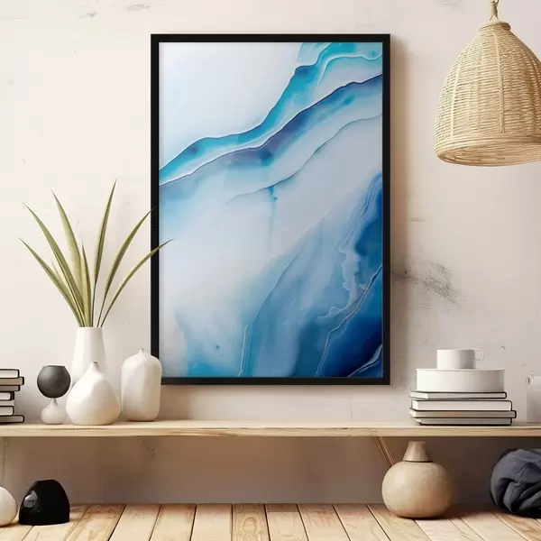 Plakatas Abstraktus mėlynas ir baltas agato raštas, sūkurinės linijos ir gradientai, lygi tekstūra, modernus menas, minimalistinis Ne f46291
