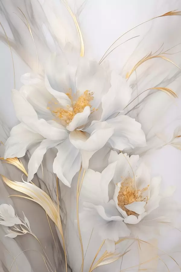 Plakatas Balta gėlė su geltonomis piestelėmis ir stiebais, subtiliais žiedlapiais, elegantiška kompozicija, neutralus fonas Ne f46293