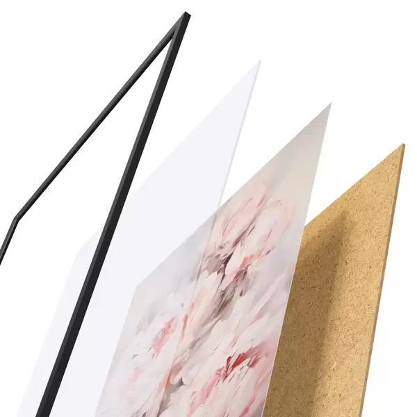 Plakatą sudaro rėmas, pleksiklas, atspausdintas vaizdas ir medžio drožlių plokštės pagrindas. Plakatą galima iš karto pakabinti ant sienos dėl kitoje pusėje esančių laikiklių.