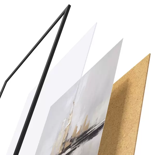 Plakatą sudaro rėmas, pleksiklas, atspausdintas vaizdas ir medžio drožlių plokštės pagrindas. Plakatą galima iš karto pakabinti ant sienos dėl kitoje pusėje esančių laikiklių.