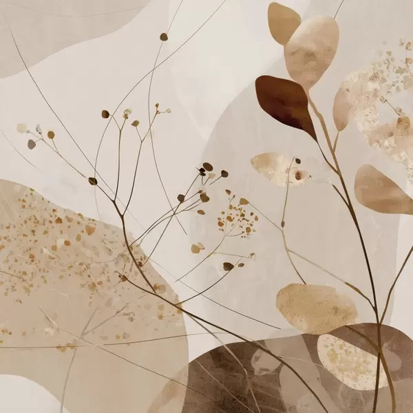 Plakatas Abstrakčios formos ir augalų motyvai smėlio atspalviais f46309