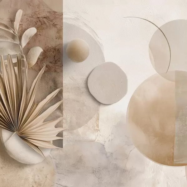 Plakatas Džiovinti palmių lapai ir 3D apskritimai smėlio spalvos tonais Ne f46310