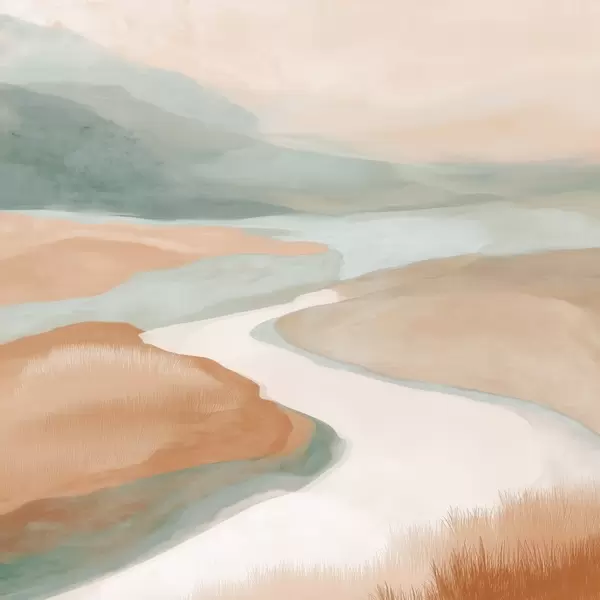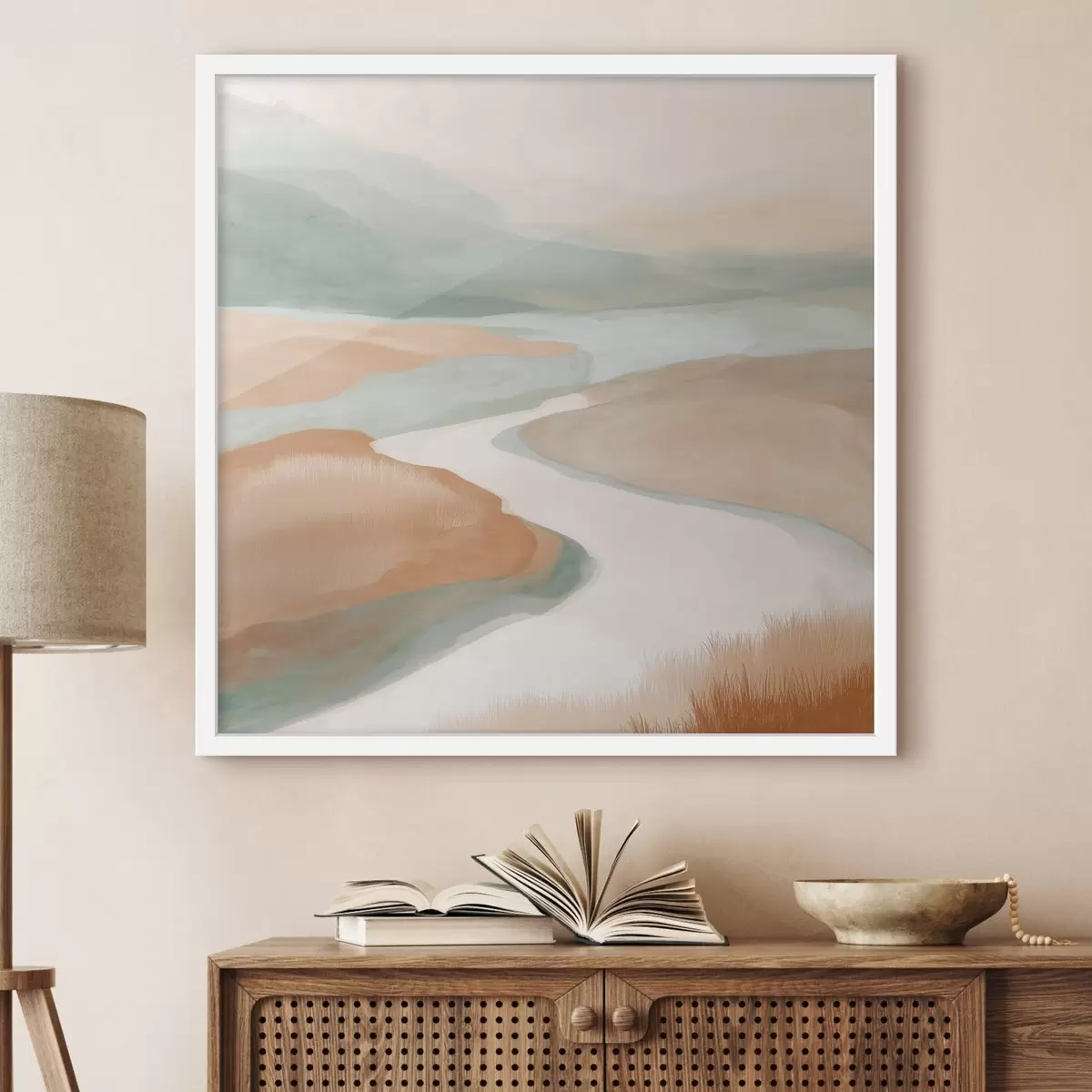 Plakatas Abstraktus peizažas su upeliu oranžine ir žalia spalvomis Ne f46316