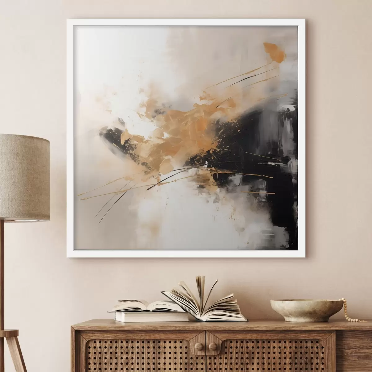 Plakatas Oranžinės ir juodos linijos, moderni abstrakcija f46327