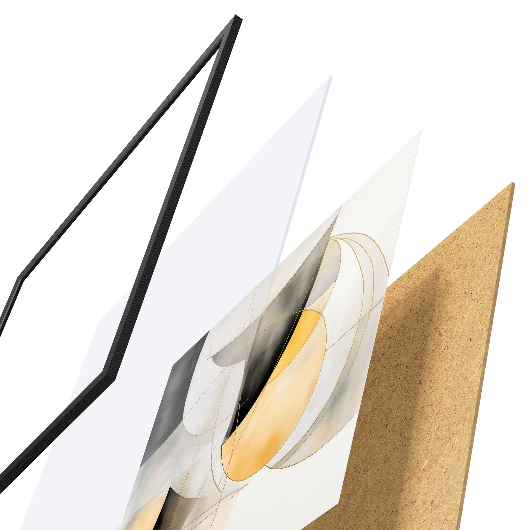 Plakatą sudaro rėmas, pleksiklas, atspausdintas vaizdas ir medžio drožlių plokštės pagrindas. Plakatą galima iš karto pakabinti ant sienos dėl kitoje pusėje esančių laikiklių.
