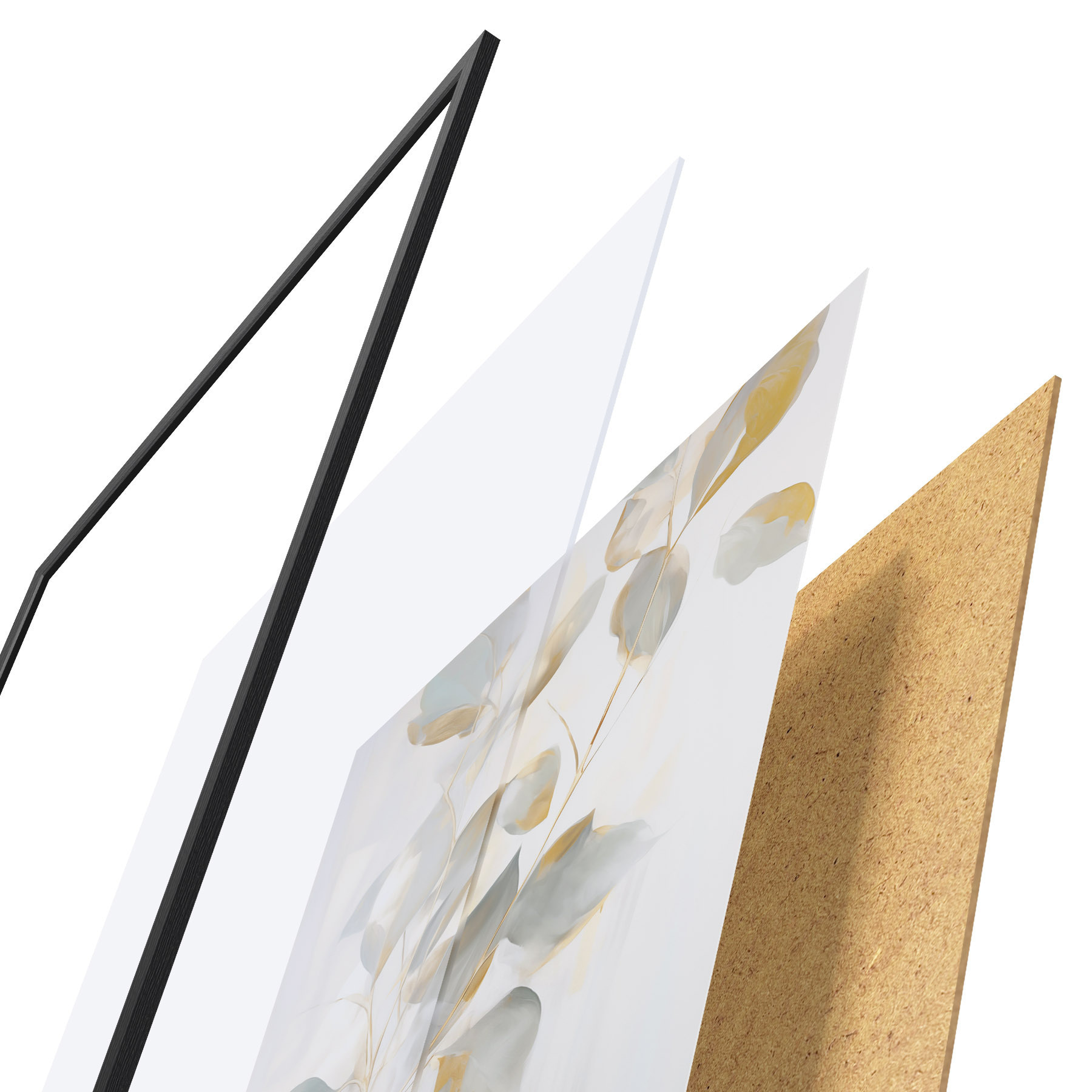 Plakatą sudaro rėmas, pleksiklas, atspausdintas vaizdas ir medžio drožlių plokštės pagrindas. Plakatą galima iš karto pakabinti ant sienos dėl kitoje pusėje esančių laikiklių.