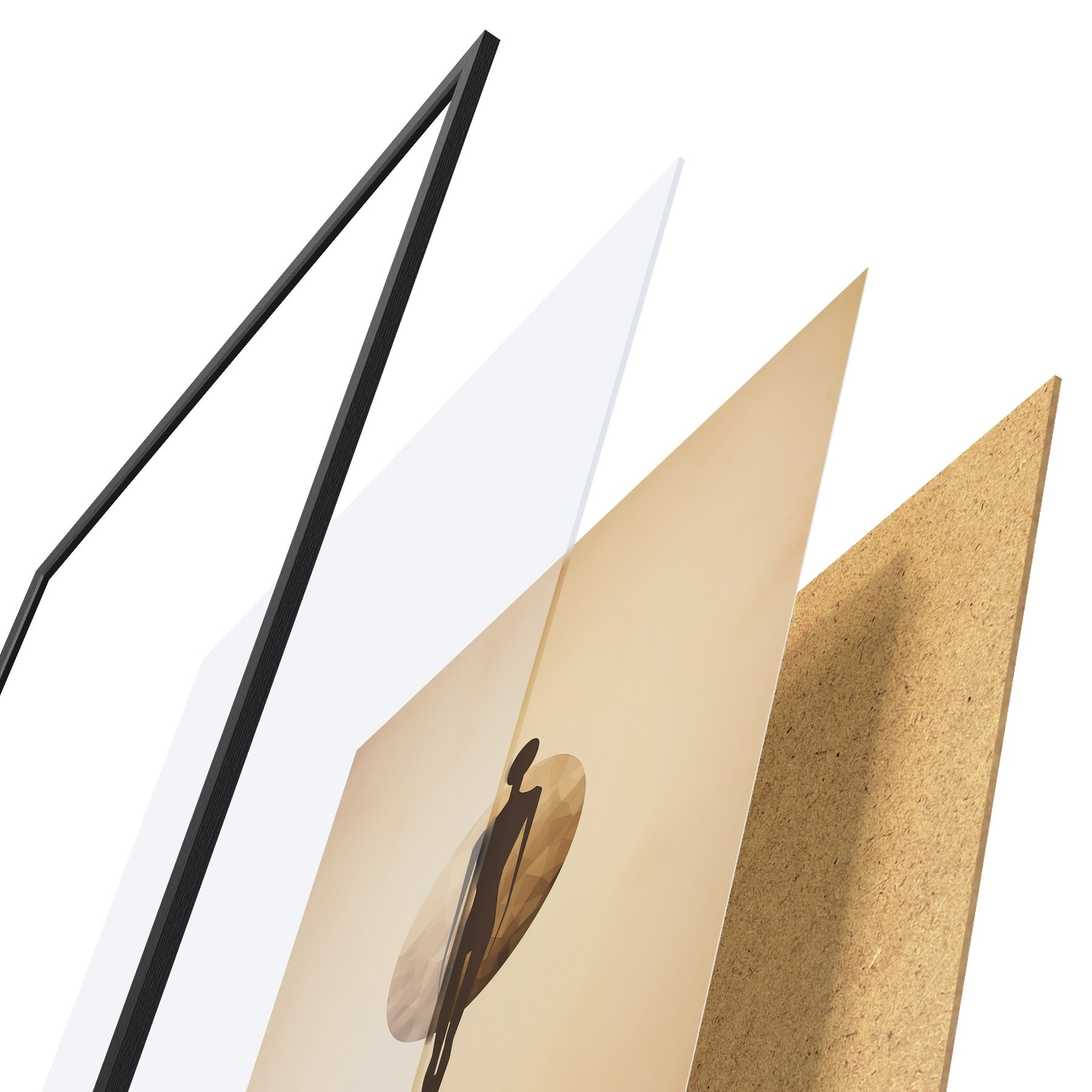 Plakatą sudaro rėmas, pleksiklas, atspausdintas vaizdas ir medžio drožlių plokštės pagrindas. Plakatą galima iš karto pakabinti ant sienos dėl kitoje pusėje esančių laikiklių.