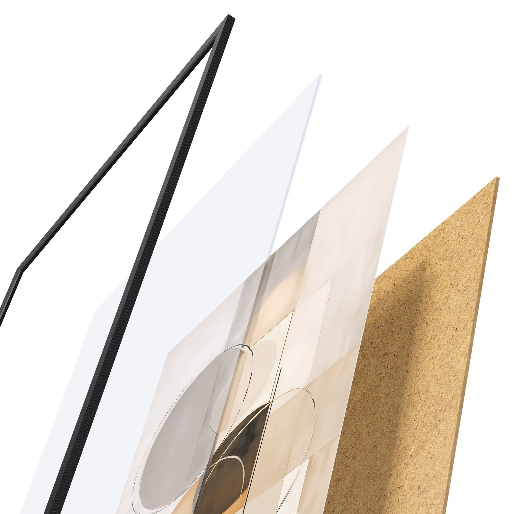 Plakatą sudaro rėmas, pleksiklas, atspausdintas vaizdas ir medžio drožlių plokštės pagrindas. Plakatą galima iš karto pakabinti ant sienos dėl kitoje pusėje esančių laikiklių.