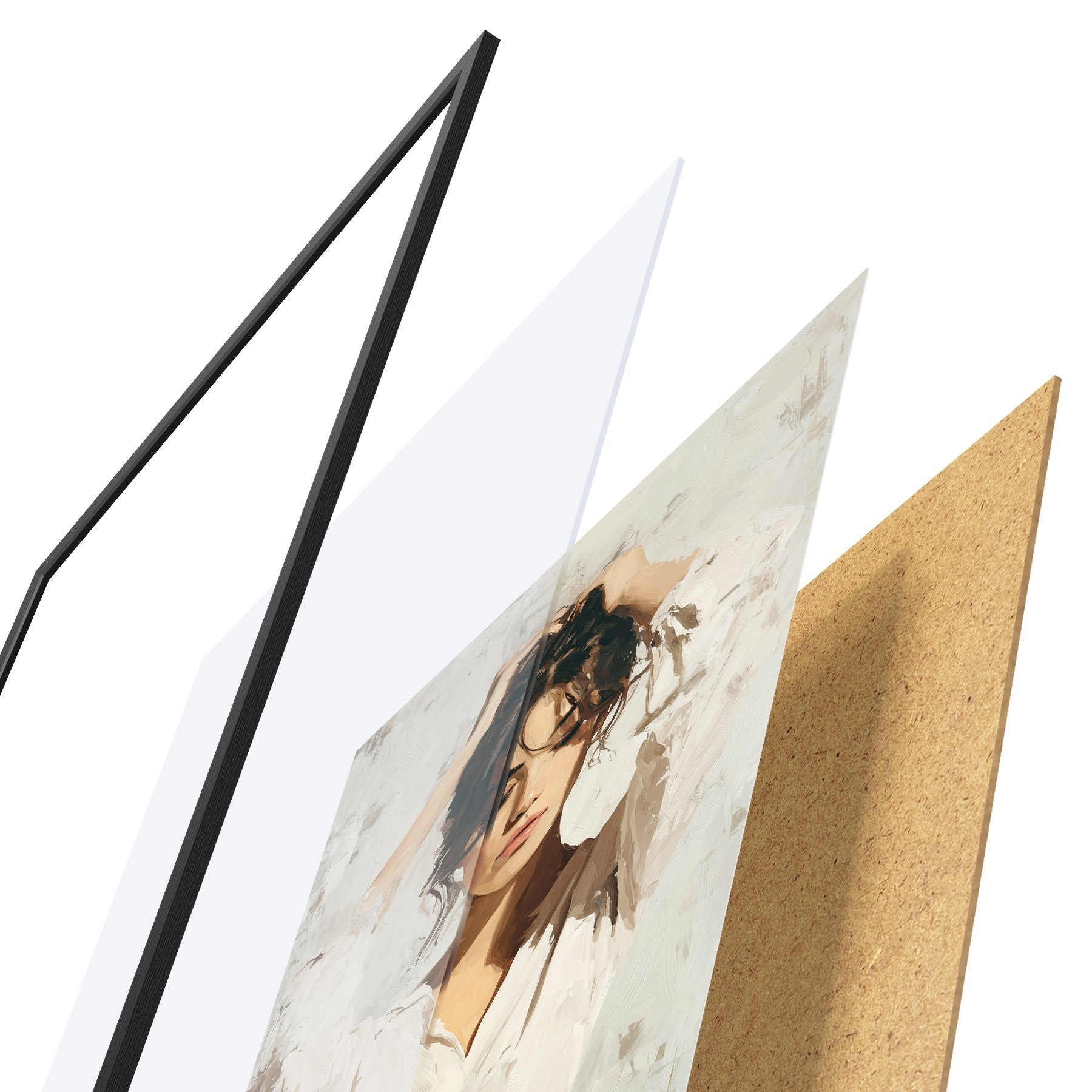 Plakatą sudaro rėmas, pleksiklas, atspausdintas vaizdas ir medžio drožlių plokštės pagrindas. Plakatą galima iš karto pakabinti ant sienos dėl kitoje pusėje esančių laikiklių.