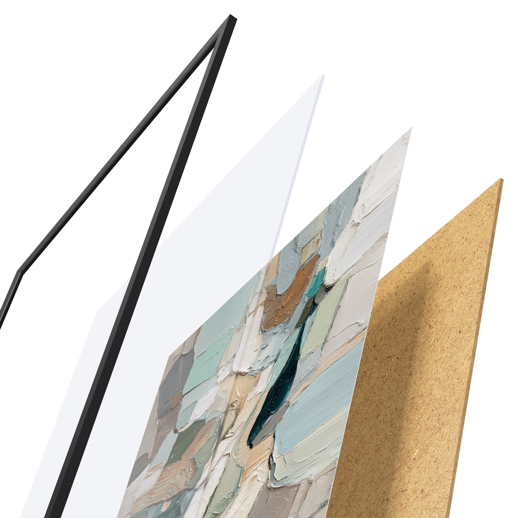 Plakatą sudaro rėmas, pleksiklas, atspausdintas vaizdas ir medžio drožlių plokštės pagrindas. Plakatą galima iš karto pakabinti ant sienos dėl kitoje pusėje esančių laikiklių.