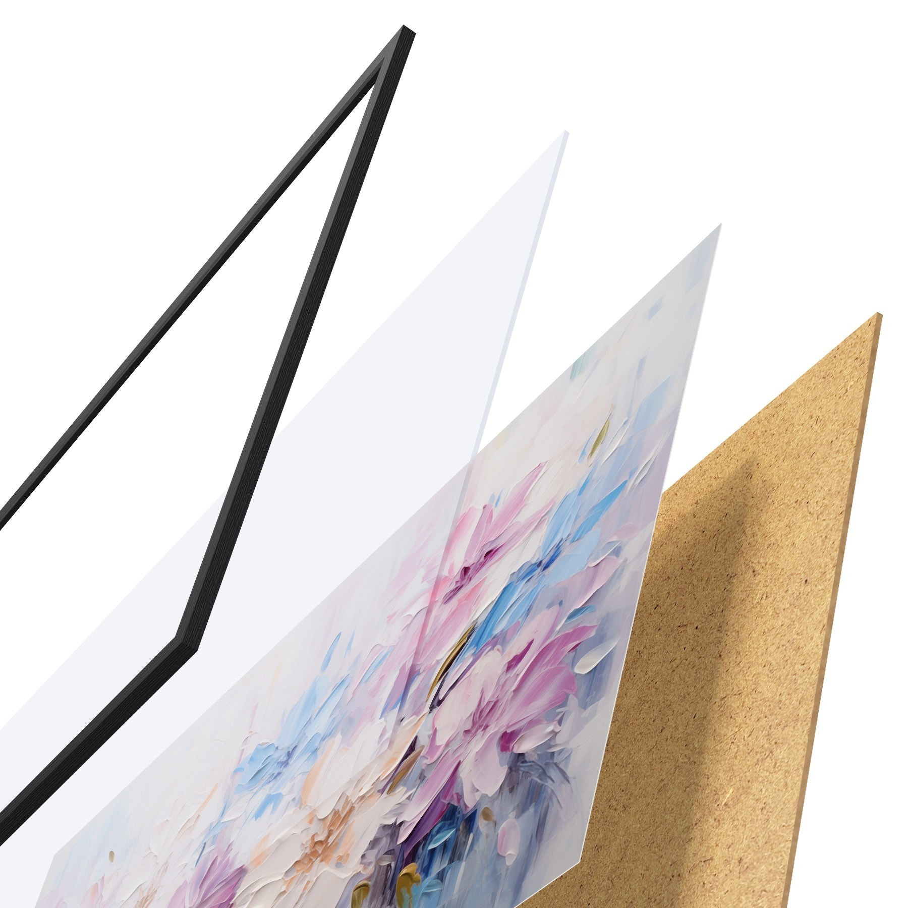 Plakatą sudaro rėmas, pleksiklas, atspausdintas vaizdas ir medžio drožlių plokštės pagrindas. Plakatą galima iš karto pakabinti ant sienos dėl kitoje pusėje esančių laikiklių.