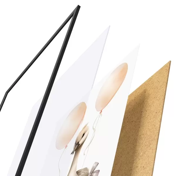 Plakatą sudaro rėmas, pleksiklas, atspausdintas vaizdas ir medžio drožlių plokštės pagrindas. Plakatą galima iš karto pakabinti ant sienos dėl kitoje pusėje esančių laikiklių.
