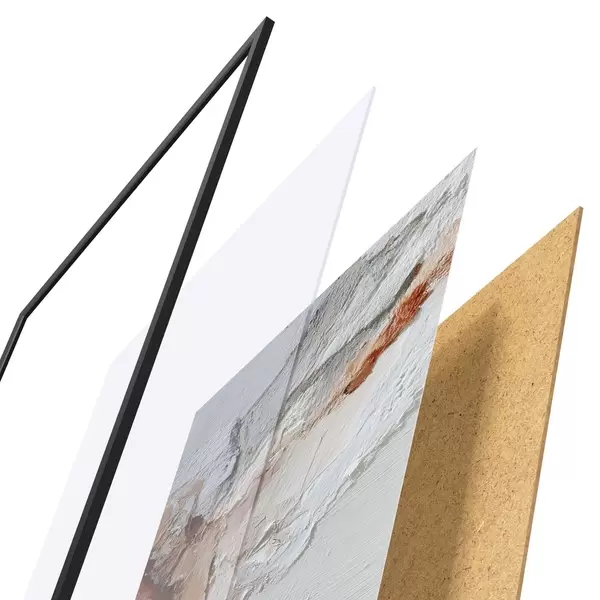 Plakatą sudaro rėmas, pleksiklas, atspausdintas vaizdas ir medžio drožlių plokštės pagrindas. Plakatą galima iš karto pakabinti ant sienos dėl kitoje pusėje esančių laikiklių.