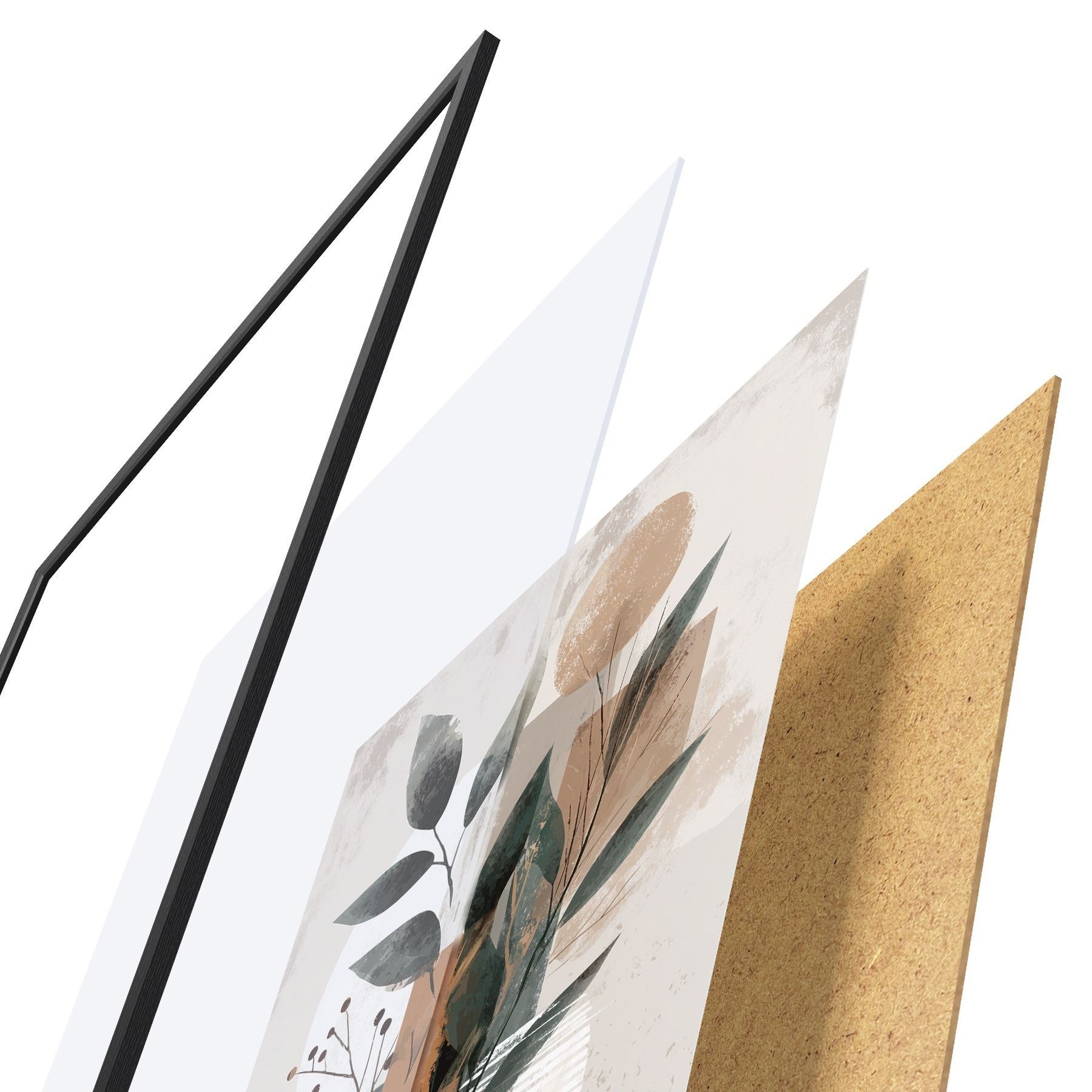 Plakatą sudaro rėmas, pleksiklas, atspausdintas vaizdas ir medžio drožlių plokštės pagrindas. Plakatą galima iš karto pakabinti ant sienos dėl kitoje pusėje esančių laikiklių.