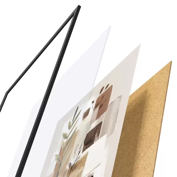 Plakatą sudaro rėmas, pleksiklas, atspausdintas vaizdas ir medžio drožlių plokštės pagrindas. Plakatą galima iš karto pakabinti ant sienos dėl kitoje pusėje esančių laikiklių.