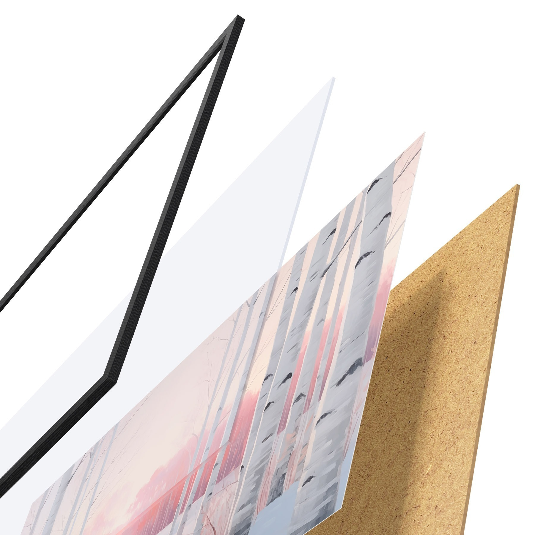 Plakatą sudaro rėmas, pleksiklas, atspausdintas vaizdas ir medžio drožlių plokštės pagrindas. Plakatą galima iš karto pakabinti ant sienos dėl kitoje pusėje esančių laikiklių.