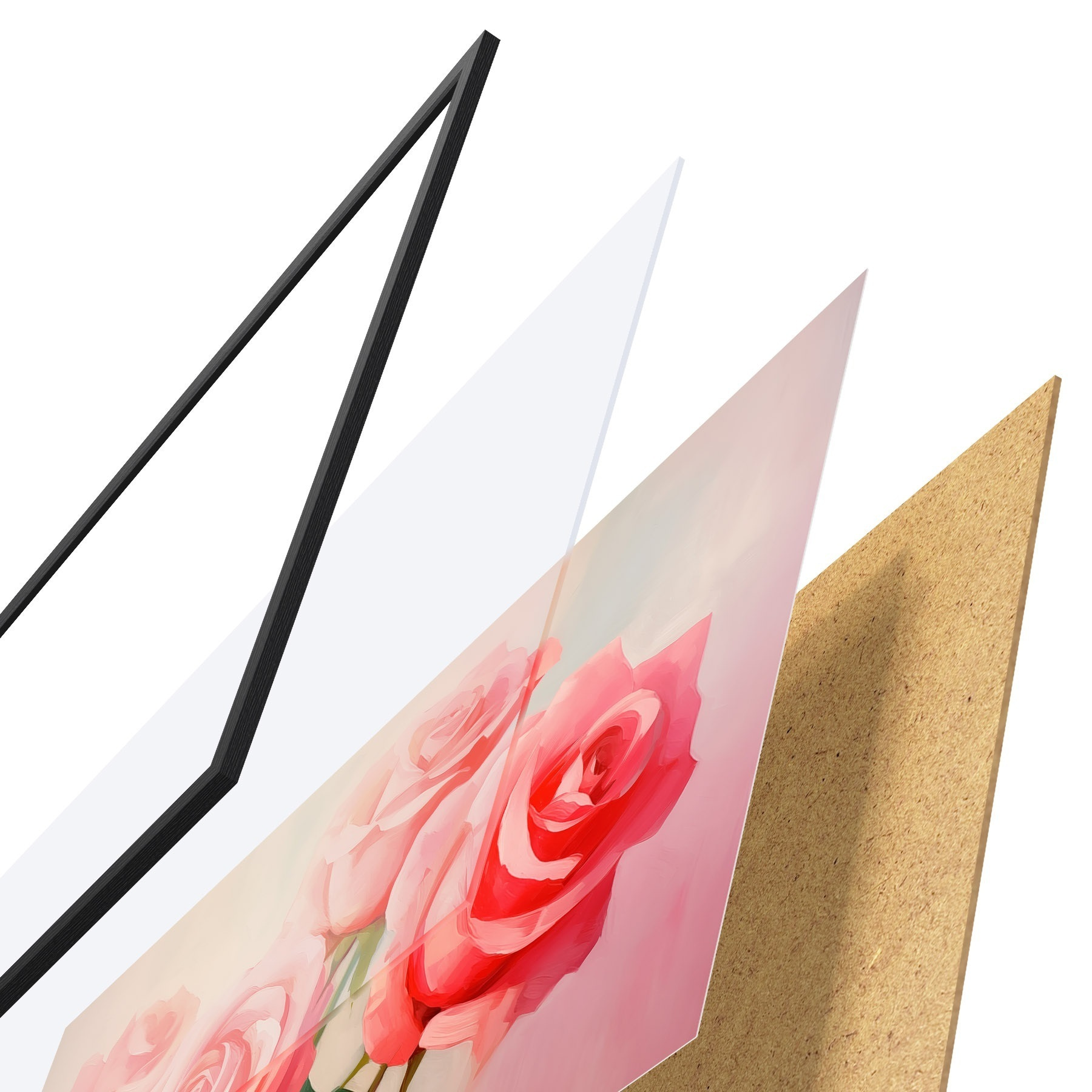 Plakatą sudaro rėmas, pleksiklas, atspausdintas vaizdas ir medžio drožlių plokštės pagrindas. Plakatą galima iš karto pakabinti ant sienos dėl kitoje pusėje esančių laikiklių.