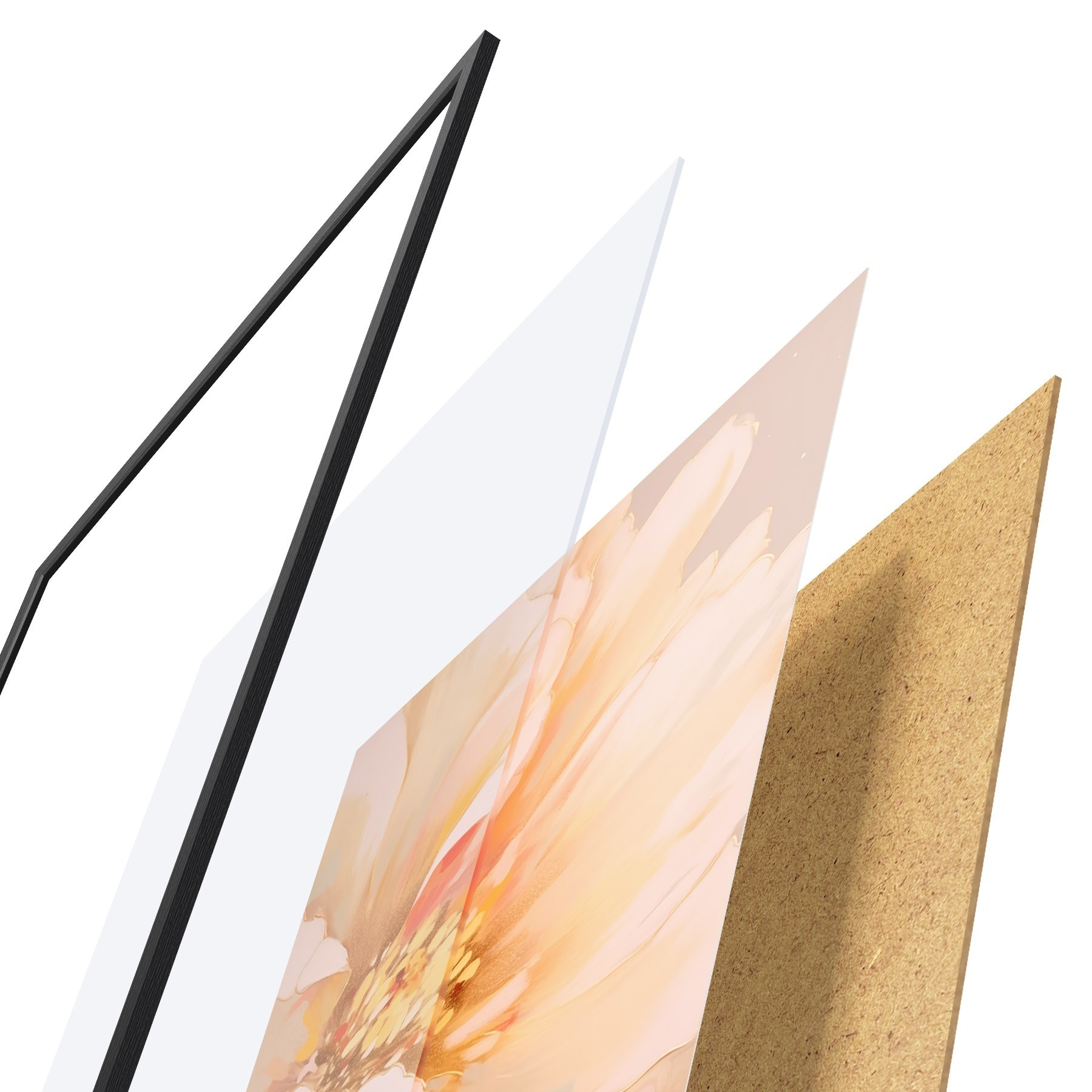 Plakatą sudaro rėmas, pleksiklas, atspausdintas vaizdas ir medžio drožlių plokštės pagrindas. Plakatą galima iš karto pakabinti ant sienos dėl kitoje pusėje esančių laikiklių.