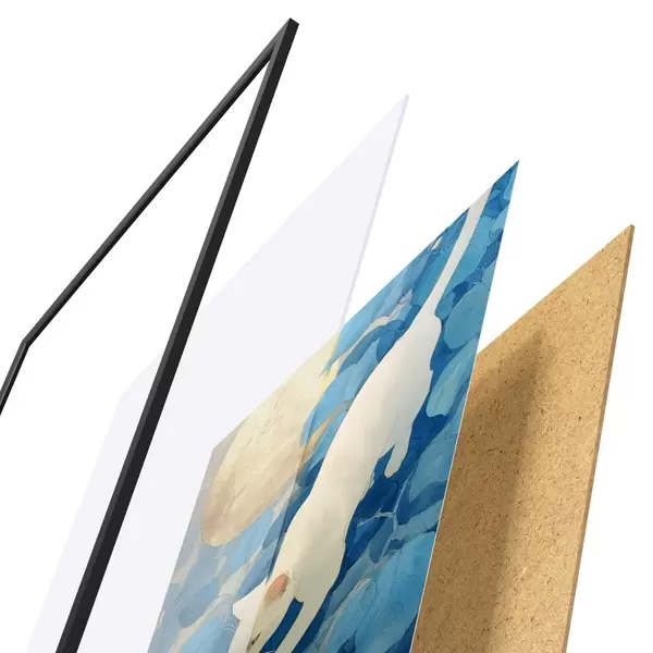 Plakatą sudaro rėmas, pleksiklas, atspausdintas vaizdas ir medžio drožlių plokštės pagrindas. Plakatą galima iš karto pakabinti ant sienos dėl kitoje pusėje esančių laikiklių.
