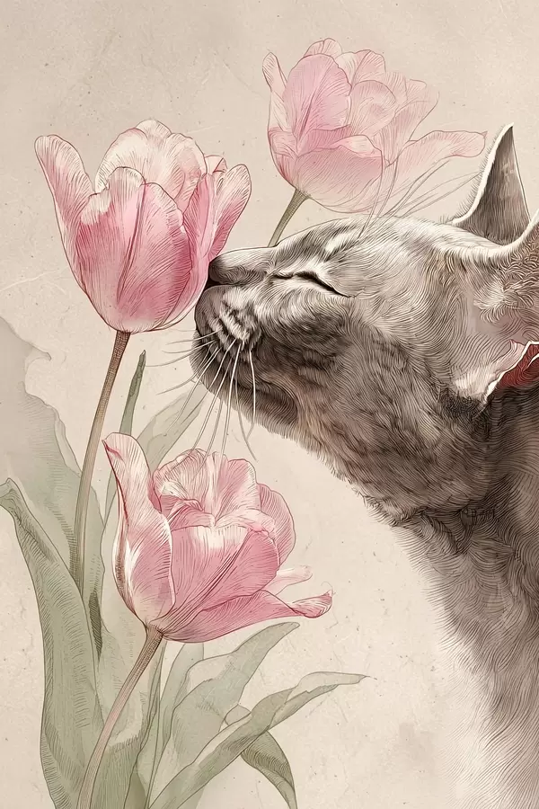 Plakatas Katė ir gėlės f46427