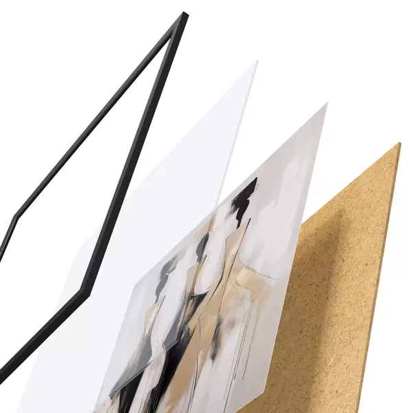 Plakatą sudaro rėmas, pleksiklas, atspausdintas vaizdas ir medžio drožlių plokštės pagrindas. Plakatą galima iš karto pakabinti ant sienos dėl kitoje pusėje esančių laikiklių.