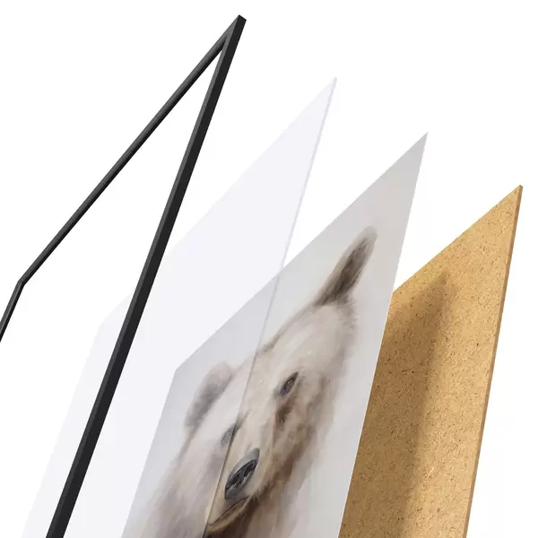 Plakatą sudaro rėmas, pleksiklas, atspausdintas vaizdas ir medžio drožlių plokštės pagrindas. Plakatą galima iš karto pakabinti ant sienos dėl kitoje pusėje esančių laikiklių.