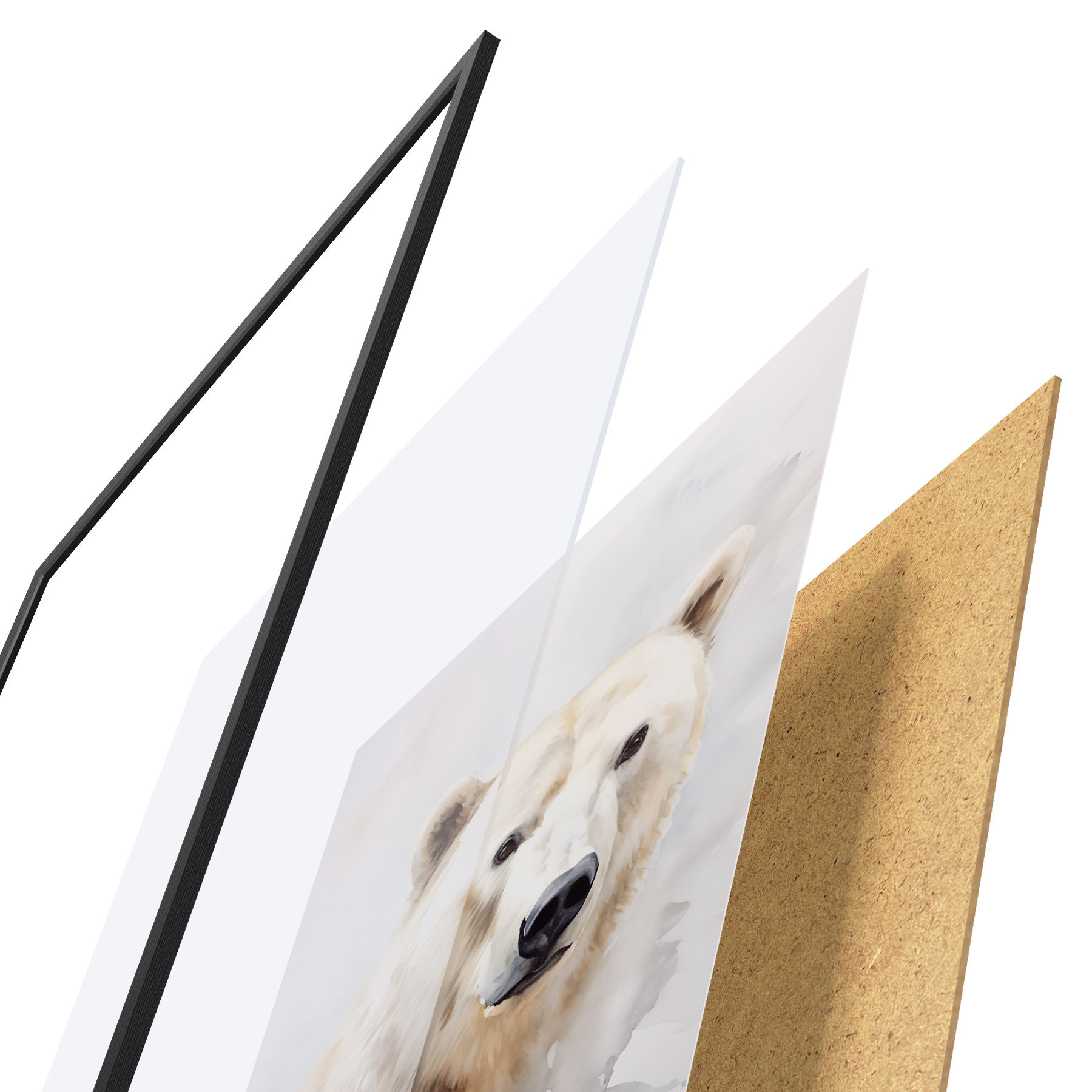 Plakatą sudaro rėmas, pleksiklas, atspausdintas vaizdas ir medžio drožlių plokštės pagrindas. Plakatą galima iš karto pakabinti ant sienos dėl kitoje pusėje esančių laikiklių.