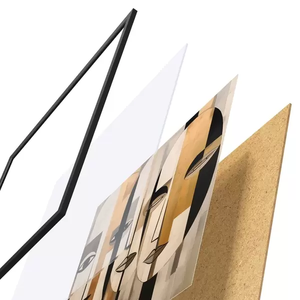 Plakatą sudaro rėmas, pleksiklas, atspausdintas vaizdas ir medžio drožlių plokštės pagrindas. Plakatą galima iš karto pakabinti ant sienos dėl kitoje pusėje esančių laikiklių.