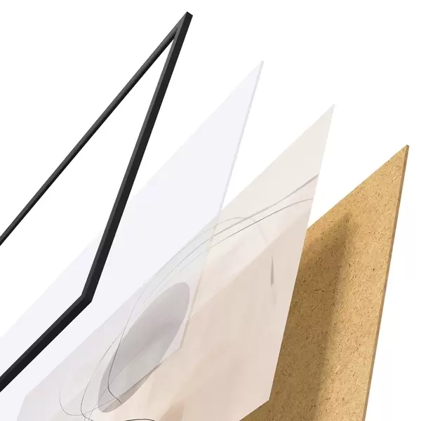 Plakatą sudaro rėmas, pleksiklas, atspausdintas vaizdas ir medžio drožlių plokštės pagrindas. Plakatą galima iš karto pakabinti ant sienos dėl kitoje pusėje esančių laikiklių.