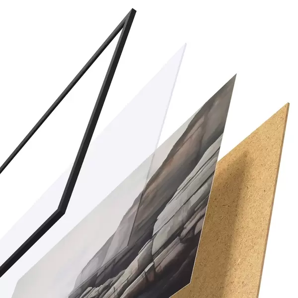 Plakatą sudaro rėmas, pleksiklas, atspausdintas vaizdas ir medžio drožlių plokštės pagrindas. Plakatą galima iš karto pakabinti ant sienos dėl kitoje pusėje esančių laikiklių.