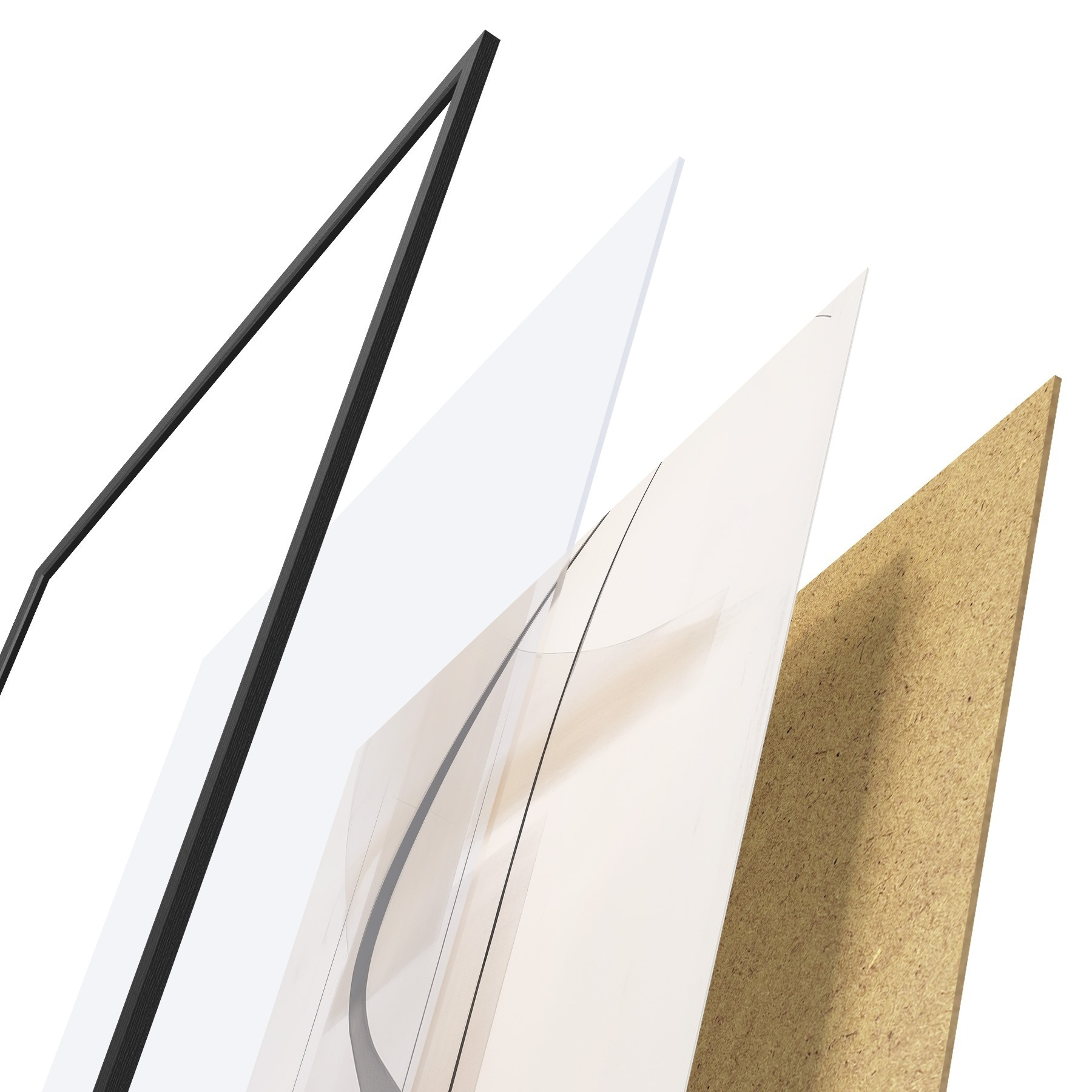 Plakatą sudaro rėmas, pleksiklas, atspausdintas vaizdas ir medžio drožlių plokštės pagrindas. Plakatą galima iš karto pakabinti ant sienos dėl kitoje pusėje esančių laikiklių.