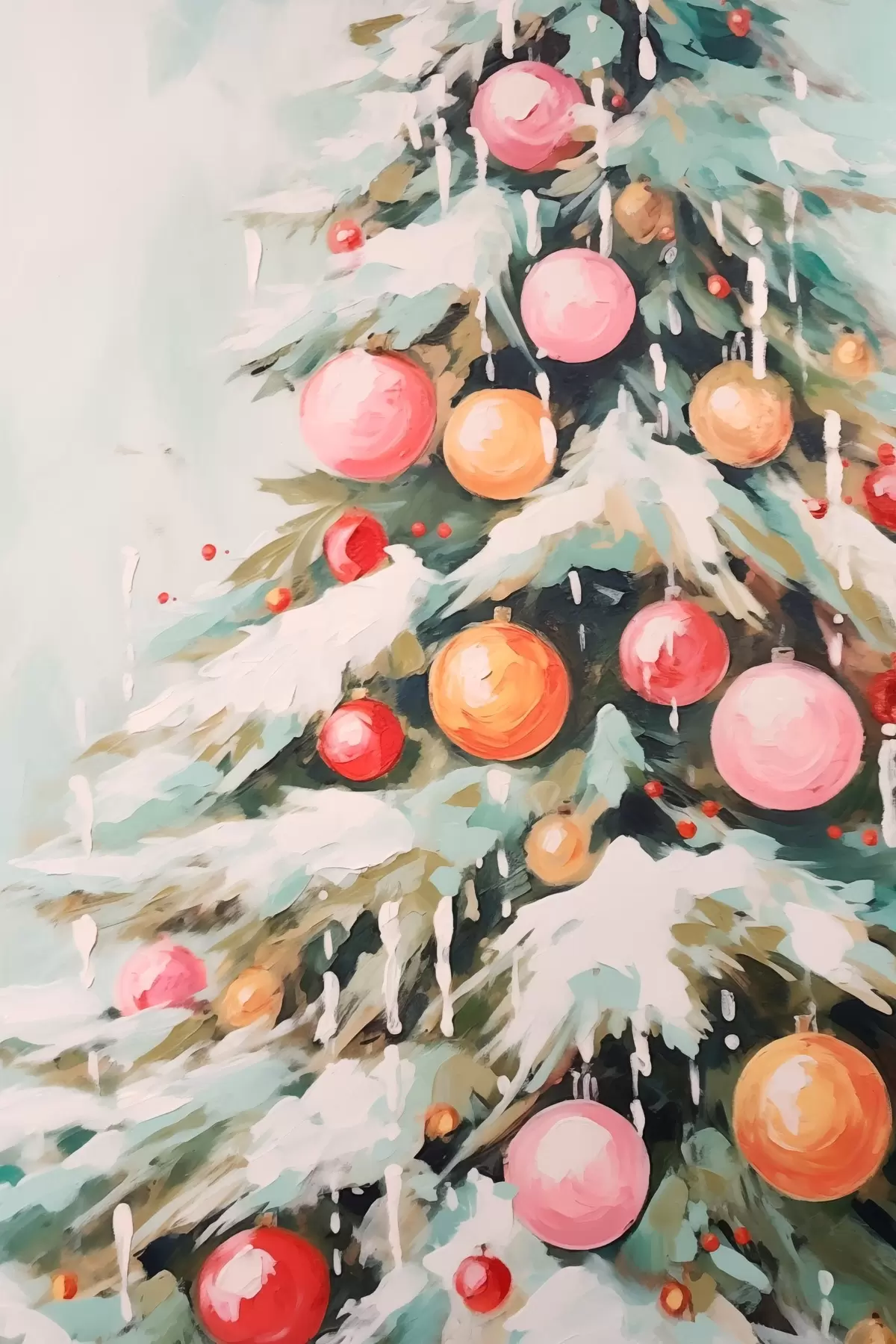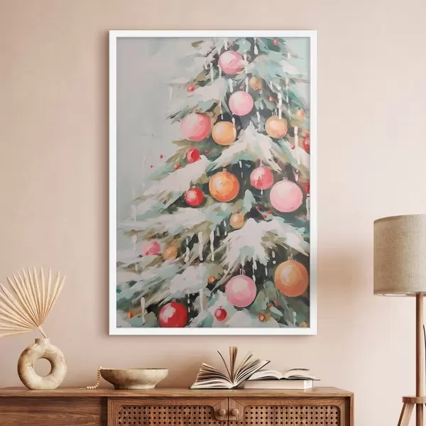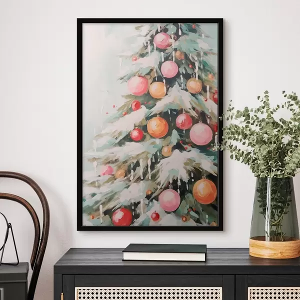 Plakatas Kalėdų eglutė su sniegu ir rožiniais kamuoliukais f46480