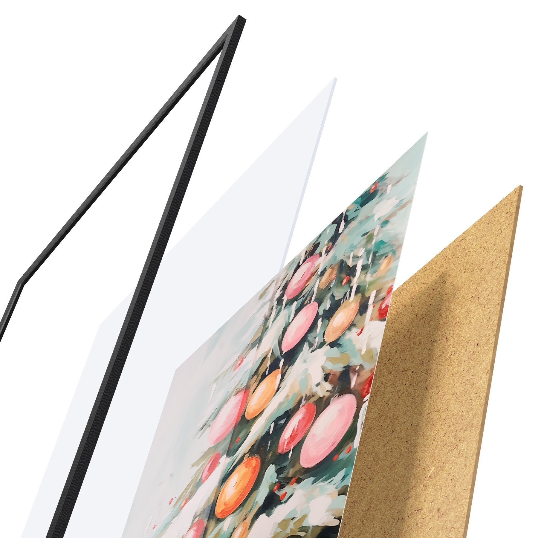 Plakatą sudaro rėmas, pleksiklas, atspausdintas vaizdas ir medžio drožlių plokštės pagrindas. Plakatą galima iš karto pakabinti ant sienos dėl kitoje pusėje esančių laikiklių.