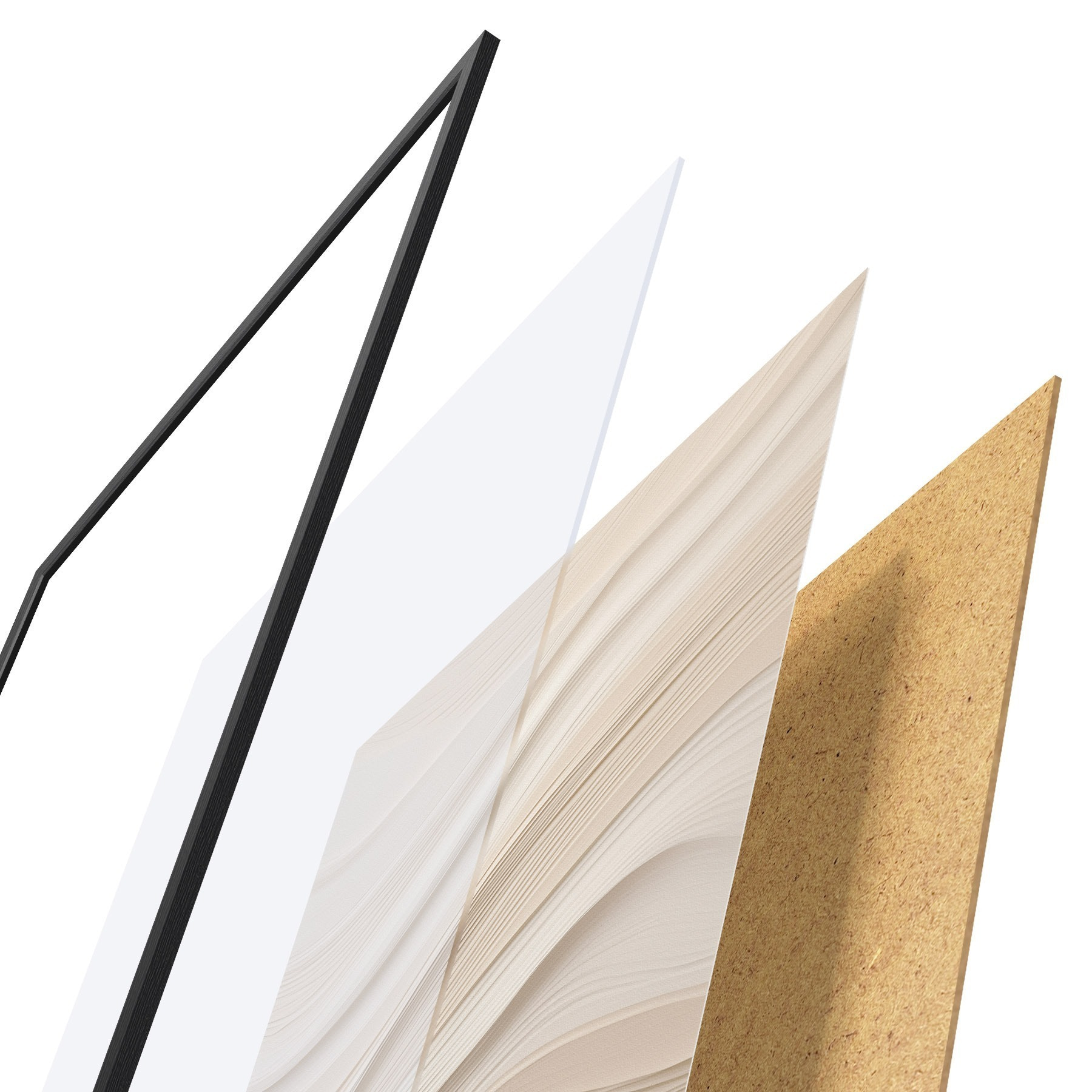Plakatą sudaro rėmas, pleksiklas, atspausdintas vaizdas ir medžio drožlių plokštės pagrindas. Plakatą galima iš karto pakabinti ant sienos dėl kitoje pusėje esančių laikiklių.