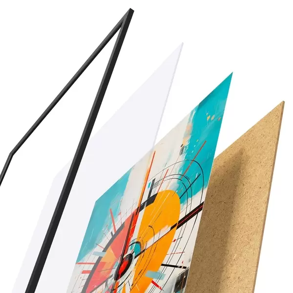 Plakatą sudaro rėmas, pleksiklas, atspausdintas vaizdas ir medžio drožlių plokštės pagrindas. Plakatą galima iš karto pakabinti ant sienos dėl kitoje pusėje esančių laikiklių.