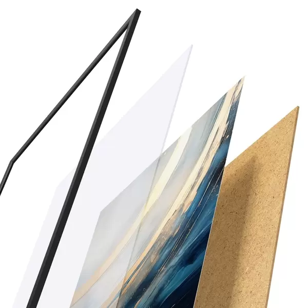 Plakatą sudaro rėmas, pleksiklas, atspausdintas vaizdas ir medžio drožlių plokštės pagrindas. Plakatą galima iš karto pakabinti ant sienos dėl kitoje pusėje esančių laikiklių.