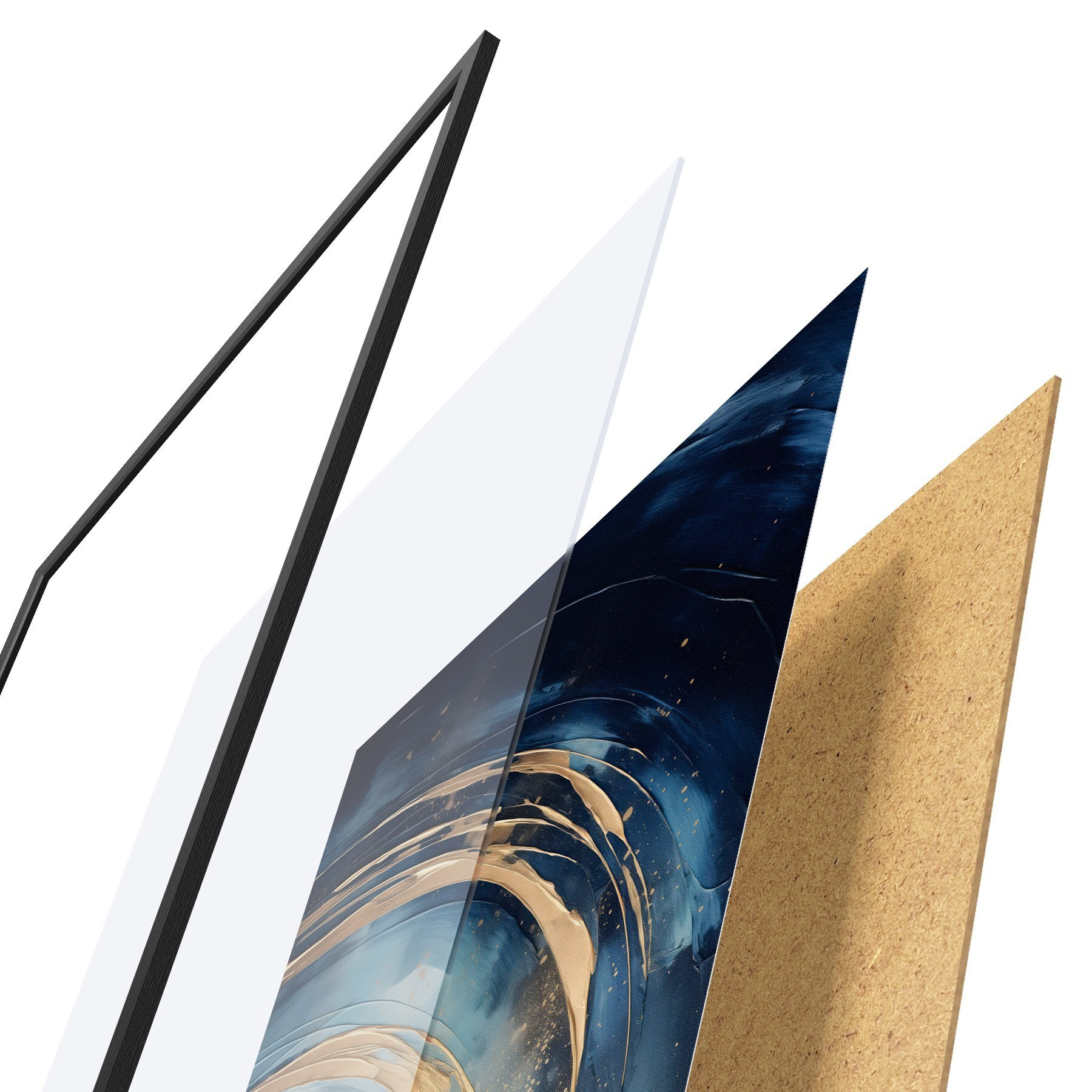 Plakatą sudaro rėmas, pleksiklas, atspausdintas vaizdas ir medžio drožlių plokštės pagrindas. Plakatą galima iš karto pakabinti ant sienos dėl kitoje pusėje esančių laikiklių.