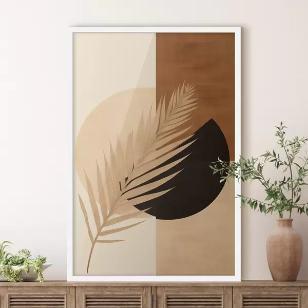 Plakatas Palmių lapai ant terakotos ir kreminės geometrijos f46490