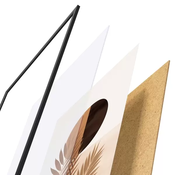 Plakatą sudaro rėmas, pleksiklas, atspausdintas vaizdas ir medžio drožlių plokštės pagrindas. Plakatą galima iš karto pakabinti ant sienos dėl kitoje pusėje esančių laikiklių.