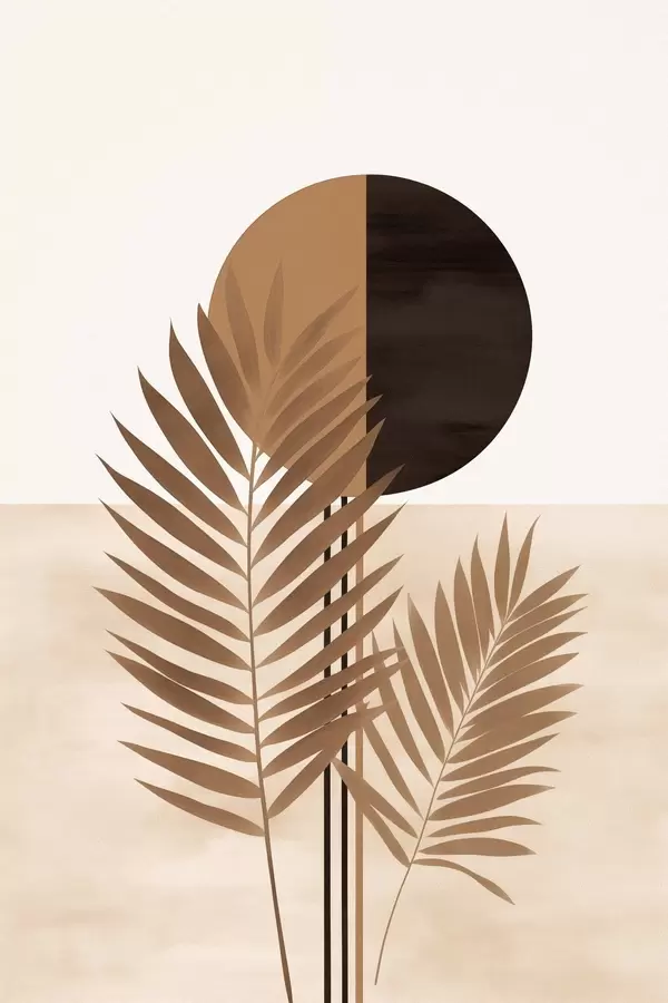Plakatas Dvi palmių lapų su padalintu apskritimu saulės motyvu Ne f46491